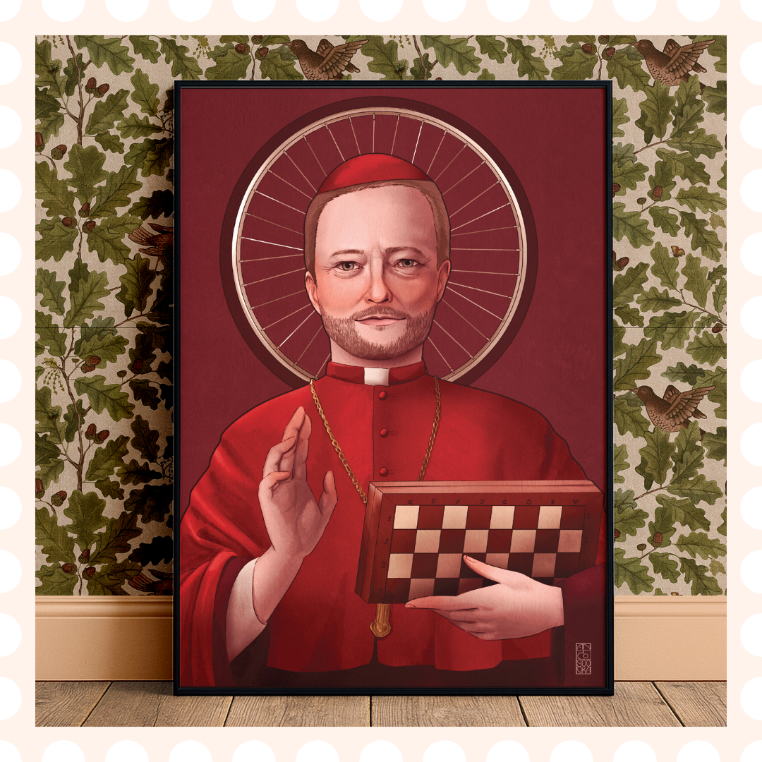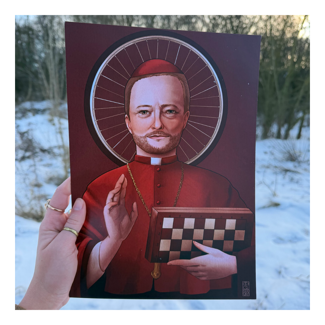 Unikatowy plakat z Ojcem Mateuszem – ikoną polskiej telewizji i memów. Ręcznie rysowana ilustracja przedstawia kultowego księdza-detektywa z Sandomierza, znanego z rozwiązywania każdej zagadki, rozkładania na łopatki każdego przeciwnika w szachy i rzadkim rozstawaniu się ze swoim rowerem. Idealny dla fanów serialu, osób zbierających nietypowe plakaty albo po prostu tych, którzy chcą mieć na ścianie kawałek polskiej popkultury.