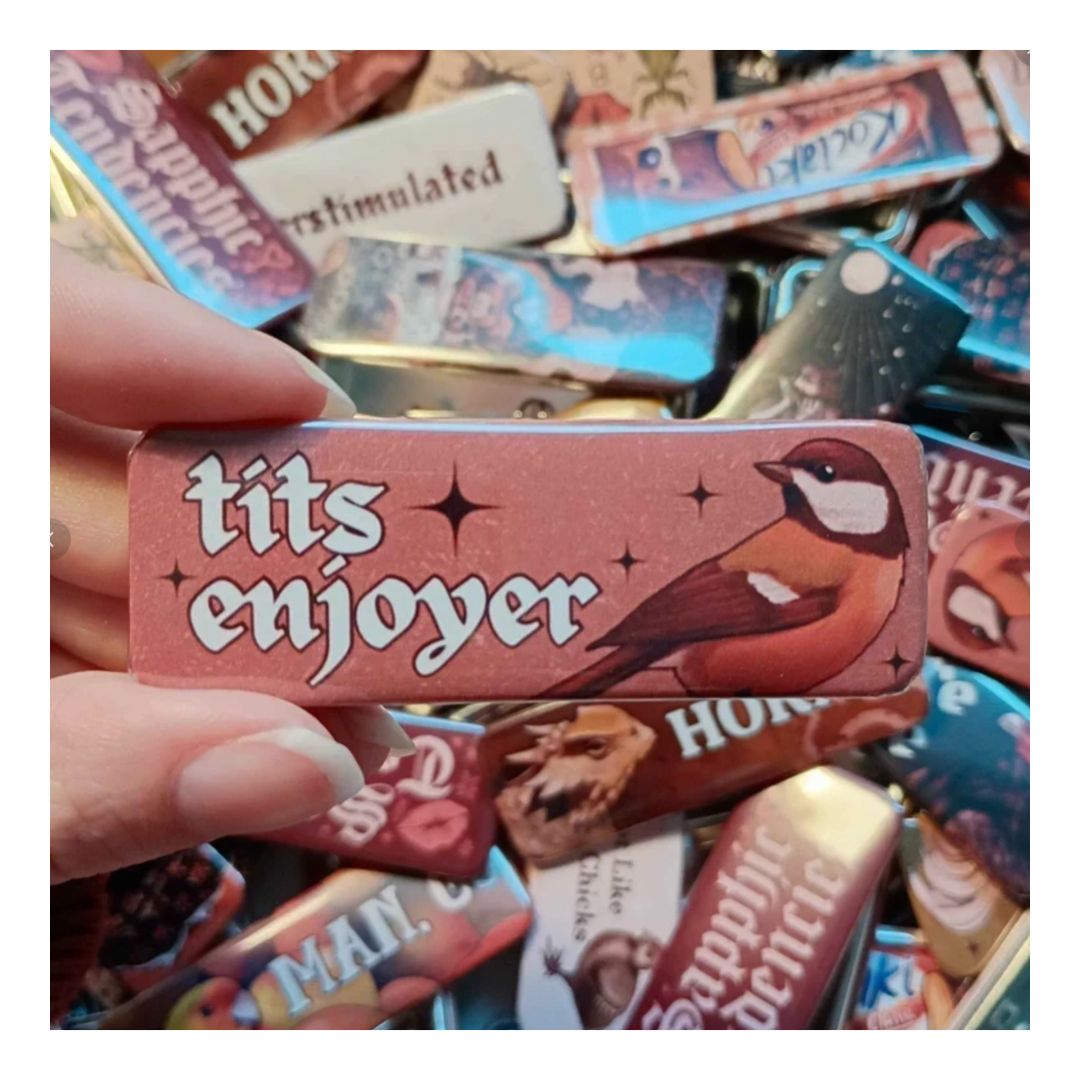 Przypinka z sikorką i napisem „tits enjoyer”. Idealna dla osób, które lubią humor, gry słów, ornitologię i unikalne, handmade dodatki. Świetna jako ozdoba na torbę, plecak, kurtkę lub prezent dla kogoś z poczuciem humoru i miłością do ptaków… I innych rzeczy ;)) Posiada klasyczne zapięcie na agrafkę, jest lekka i trwała.