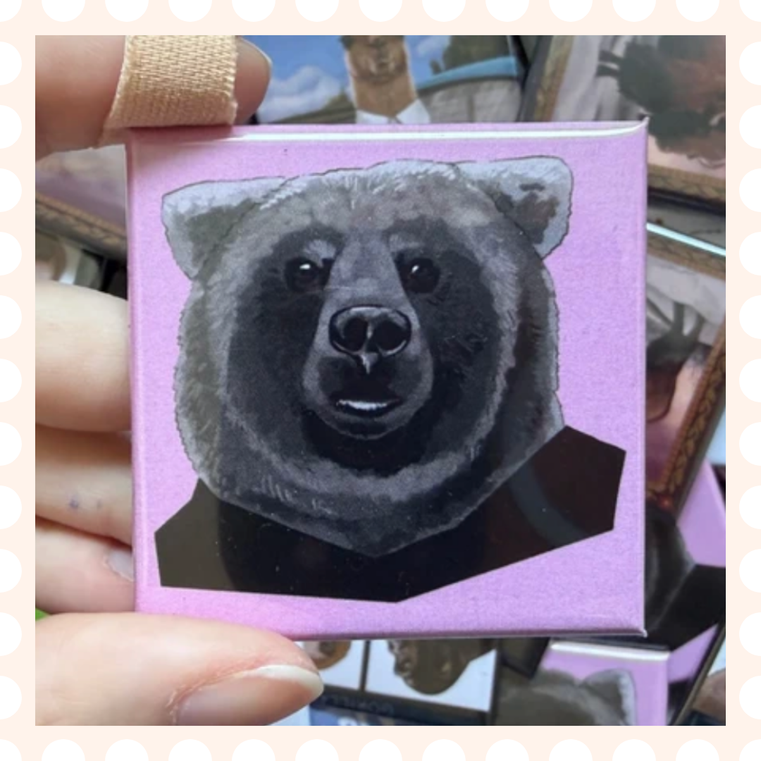 Ręcznie rysowana przypinka o wymiarach 50×50 mm inspirowana estetyką albumu Brat autorstwa Charli XCX. W tej wersji kultowy minimalistyczny napis „brat” został zmieniony na „bat”, a motywem przewodnim jest nietoperz. Rysunek jest częścią całej serii moich zwierzęcych wersji kultowych albumów muzycznych. Przypinka świecie nada się jako ozdoba na torbę, plecak, kurtkę lub dodatek dla fanek nietoperzy czy Charlie XCX. Posiada klasyczne zapięcie na agrafkę, jest lekka i trwała.