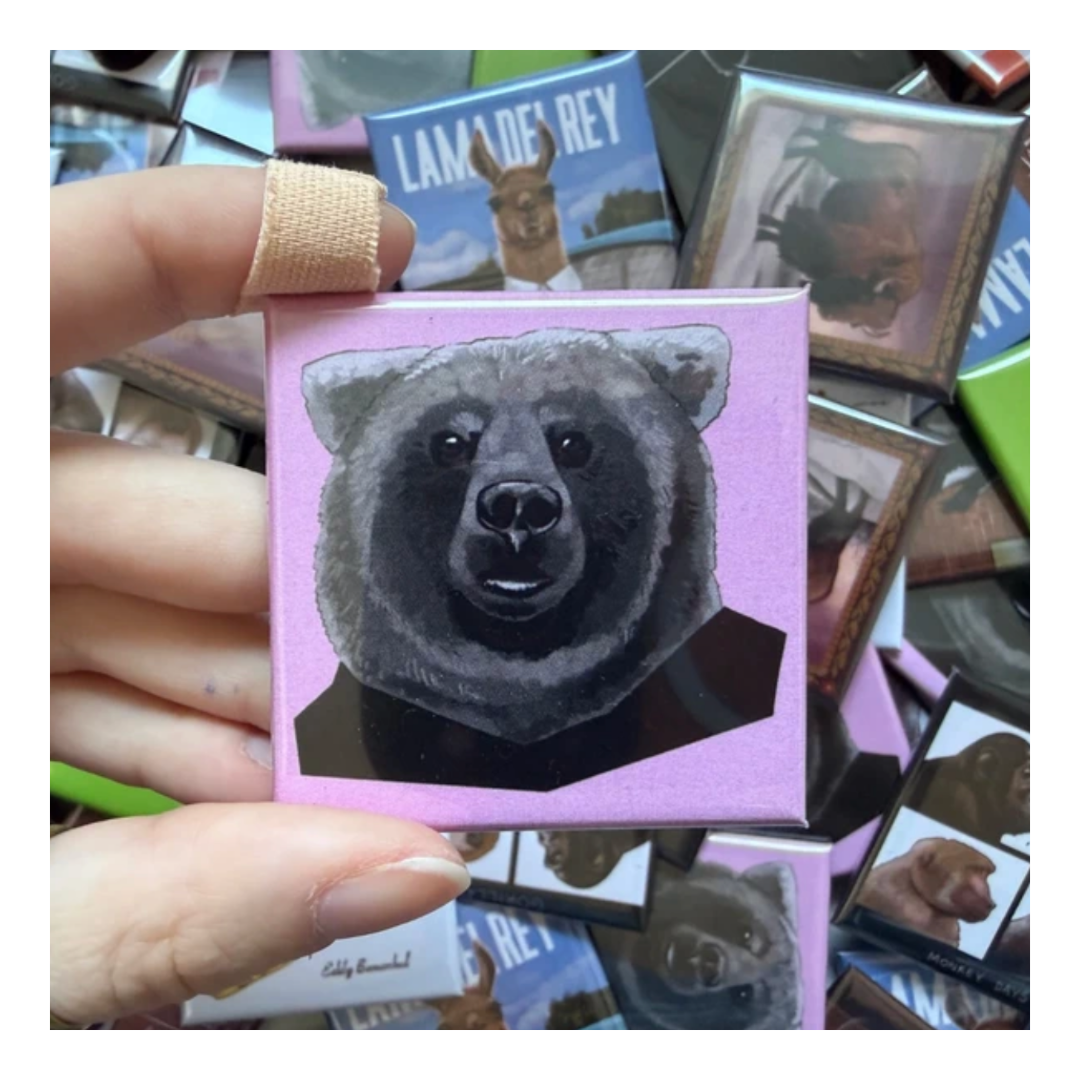 Ręcznie rysowana przypinka o wymiarach 50×50 mm inspirowana estetyką albumu Igor autorstwa Tyler, The Creator. W tej autorskiej reinterpretacji zamiast charakterystycznej postaci z okładki pojawia się niedźwiedź. Rysunek jest częścią całej serii moich zwierzęcych wersji kultowych albumów muzycznych. Przypinka świecie nada się jako ozdoba na torbę, plecak, kurtkę lub dodatek dla fanek niedźwiedzi czy Tylera. Posiada klasyczne zapięcie na agrafkę, jest lekka i trwała.