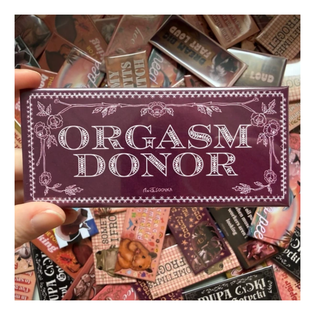 Przypinka 54×120 mm Orgasm donor